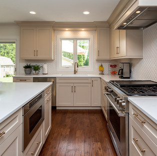 Minnesota Cabinets Designers Kari and Chelsea worked with our clients to design this beautiful kitchen remodel, adding storage and creating a more functional space. Our clients wanted a facelift for their classic kitchen layout, one that would also make the space feel larger. We worked with Worth Exteriors on the remodeling process to remove the bulkheads and a drywalled pantry to add more useful space. We also shifted the fridge location and made the island larger. The homeowners selected upgraded appliances so we were able to get a beautifully integrated look for this kitchen. The homeowners chose Bungalow Beige for the color of cabinets, a simple white countertop, white backsplash with a fun shape and used a fun rose gold finish for hardware. This kitchen facelift not only added modern beauty to a classic layout, but also brought along tons more storage and room to cook.