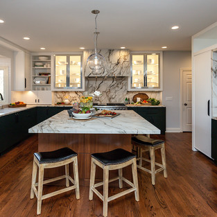 This Urbandale home was remodeled by custom home builder Mainbuilt in conjunction with Minnesota Cabinets. Designers Kari and Chelsea brought in timeless trends of black and white with subtle pops of color throughout, while adding in natural elements of wood and grain-matched porcelain countertops to give this home a modern update. Mainbuilt's Scotty Yount was the project manager.