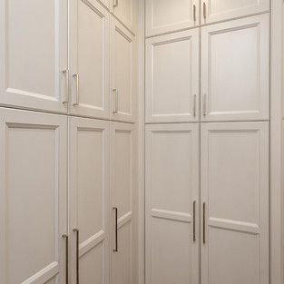 One of the features we like best about this custom kitchen design is the concealed pantry– and the stove hood is trés chic.
